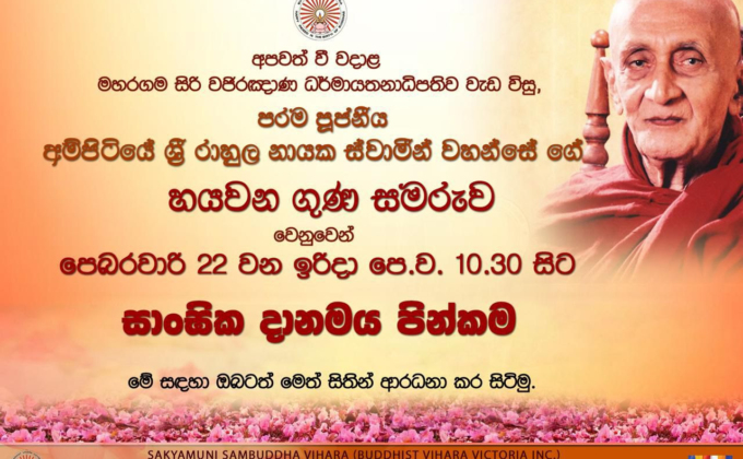 See Upcoming EventsSpecial Dhamma sermons by Ven. Mankadawala Sudassana Thero
