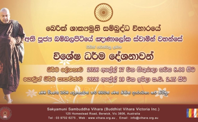 Registered as Buddhist Vihara Victoria Inc. (BVV Inc.)Sakyamuni Sambuddha Vihara was first established in 2002. Venerable Soma Thero's notion aspiration was, that one day the Vihara should become a center for Buddhist Education, Research, Information & Culture. It was his vision that this would not just be a temple for Sri Lankan Buddhists but, be a central point for all who wished to learn more about the teachings of the Lord Buddha.