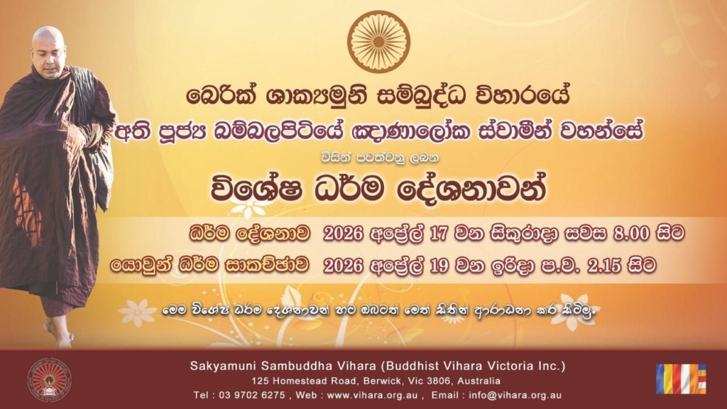 Monthly Sil program will be held on this day from 8.00 AM to 5.00 PM at the Sakyamuni Sambuddha Vihara.