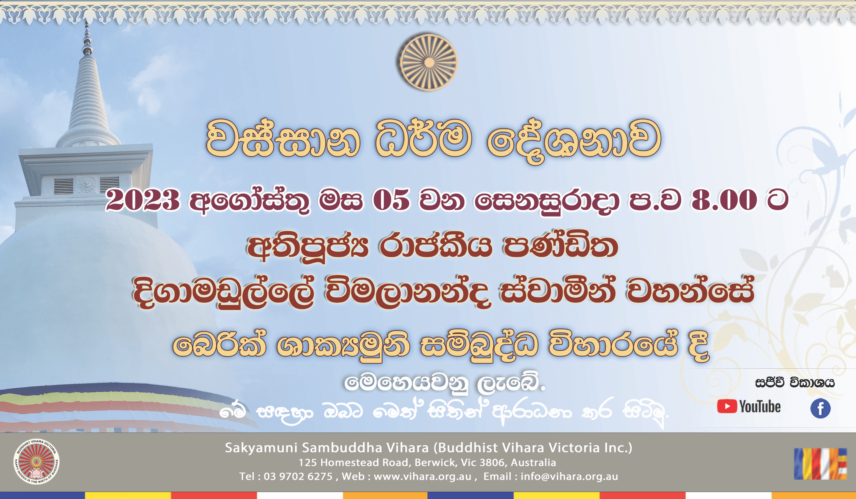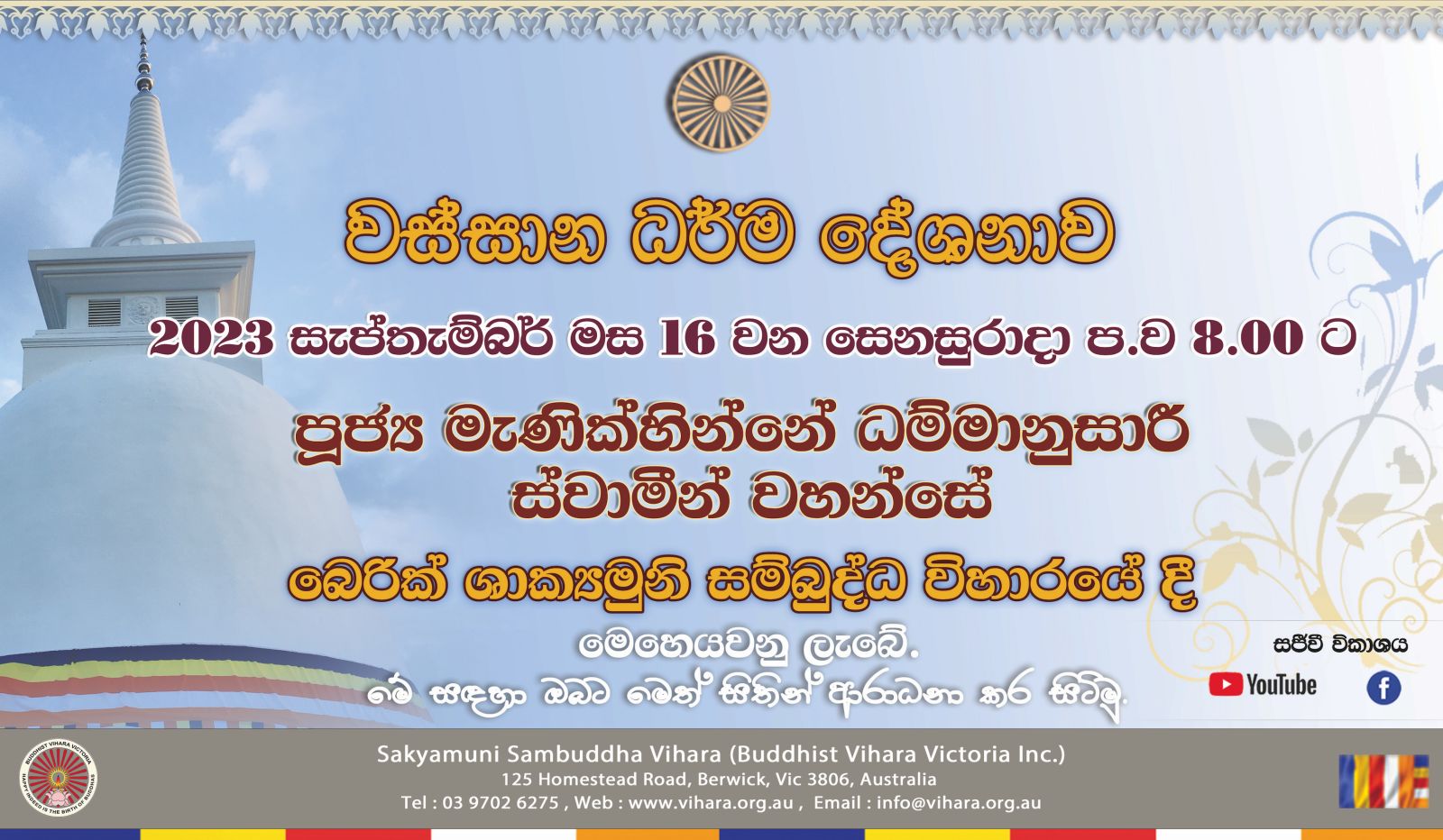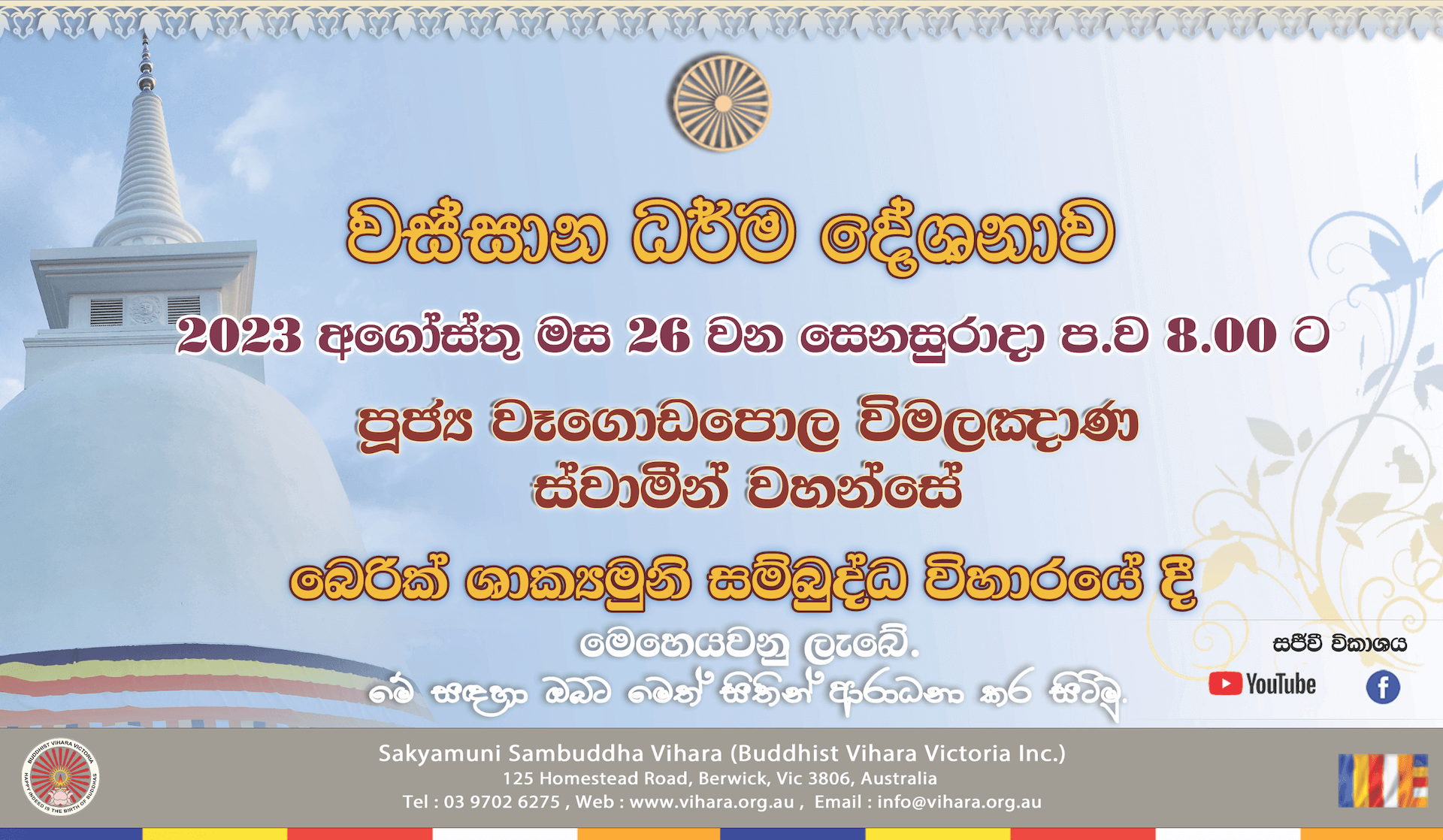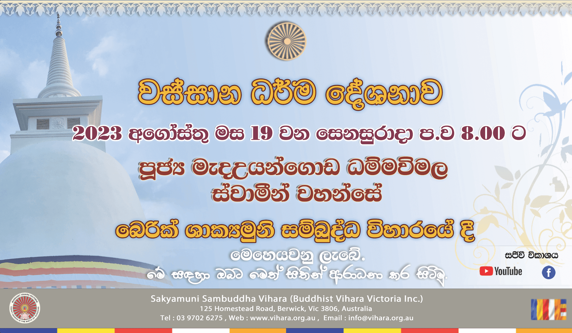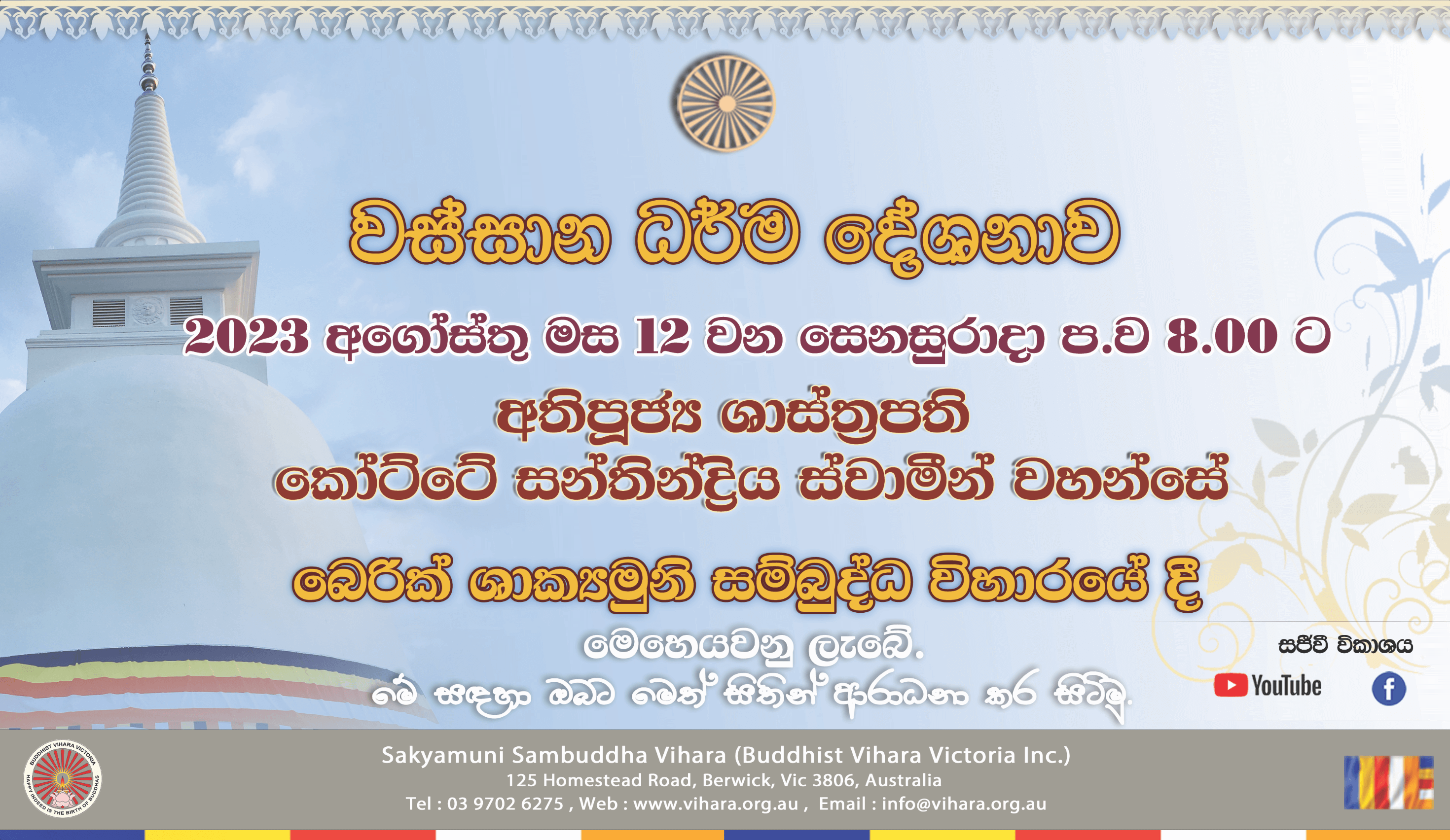 Sakyamuni Sambuddha Vihara 125 Homestead Road, Berwick, VictoriaDear Devotees, A Special Dasabala Gnana Pooja will be conducted on Sunday, 24th September from 7.00 PM, We kindly invite you for this rare meritorious event. Please see below notice for details. May the Noble Triple Gem bless you!